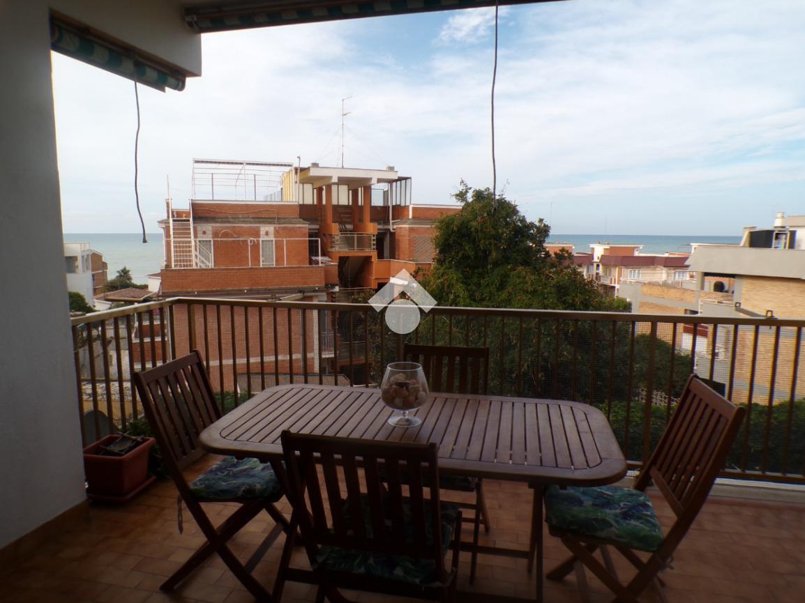 Lungomare Enea, adiacente i stabilimenti balneari, appartamento al piano terra ristrutturato composto da soggiorno con uscita su terrazzo abitabile, cucina, due camere da letto, cameretta e due bagni.