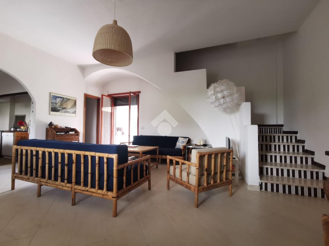 AL PIANO TERRA:SOGGIORNO CON ACCESSO DIRETTO ALLA VERANDA COPERTA ATTREZZATO CON BARBECUE, CUCINA A VISTA E BAGNO. AL PIANO SUPERIORE DISMPEGNO, DUE CAMERE DA LETTO DI CUI UNA CON CONDIZIONATORE E SECONDO BAGNO. BOX AUTO