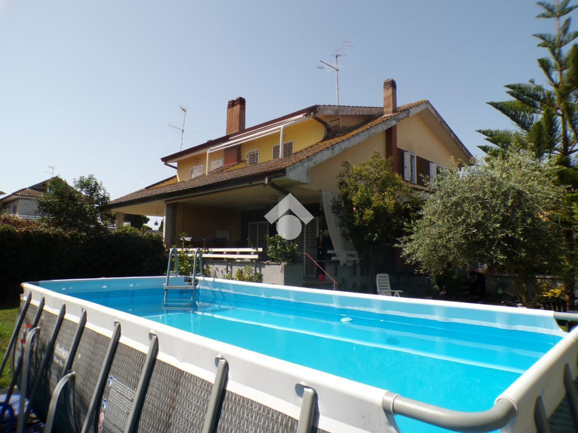 LAVINIO VIA DEI GAROFANI In una delle più rinomate vie di Lavinio in zona giornalisti disponiamo di una villa bifamiliare all' interno di un contesto privato accessibile sia con la macchina che a villa vanta di un meraviglioso giardino di 400 mq e di una comoda veranda abitabile, entrando ci accoglie un ampio salone finestrato con cucina a vista, uscita su una seconda terrazza abitabile comunicante con il secondo giardino, cameretta e bagno. Salendo al primo piano tramite scala in marmo troviamo due camere matrimoniali con sfogo esterno, camera media e bagno. Al piano seminterrato al quale si può accedere sia tramite scala interna che accesso esterno ci accoglie la sala hobby, suddivisa in sala con camino, soggiorno con cucina, camera matrimoniale e bagno. Termoautonoma, ottima soluzione per essere abitata tutto l' anno e anche da due famiglie. Adiacente ai sevizi pubblici, scuola e a 1 km dal